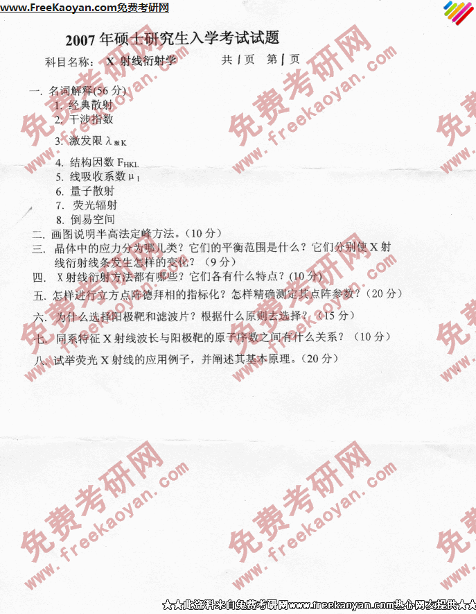 专业课考研经验 本站小编 FreeKaoyan 2018-01-23南京农业大学2007年考研真题-植物生理学