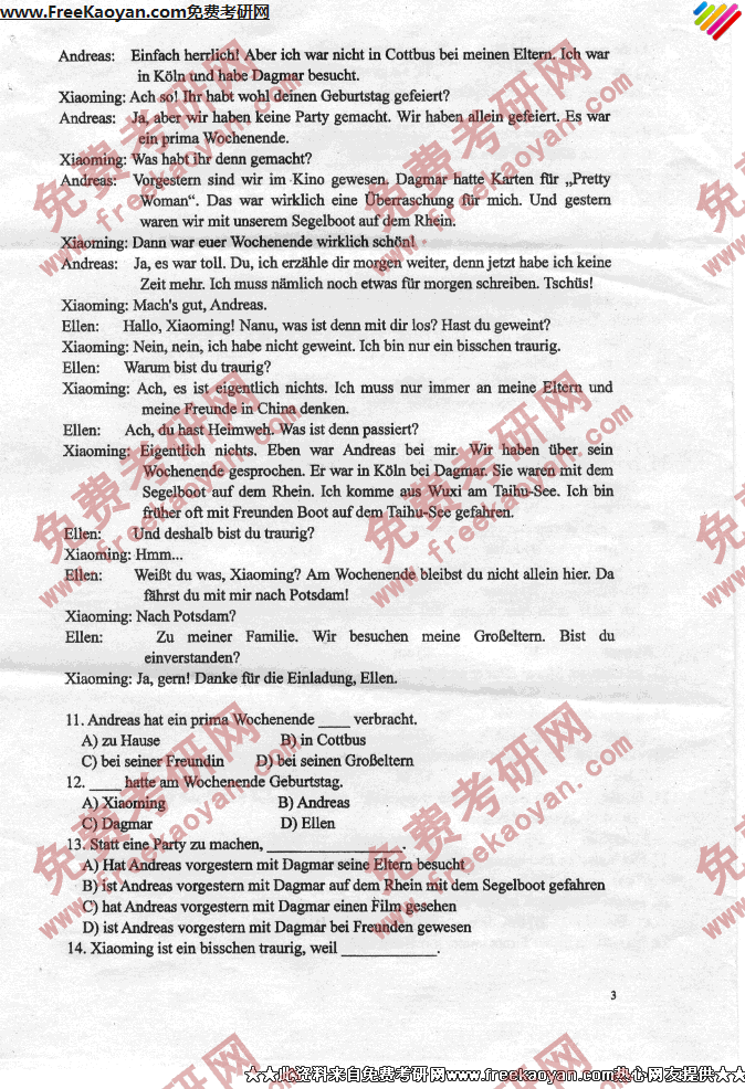 燕山大学2007年考研真题-德语(3)