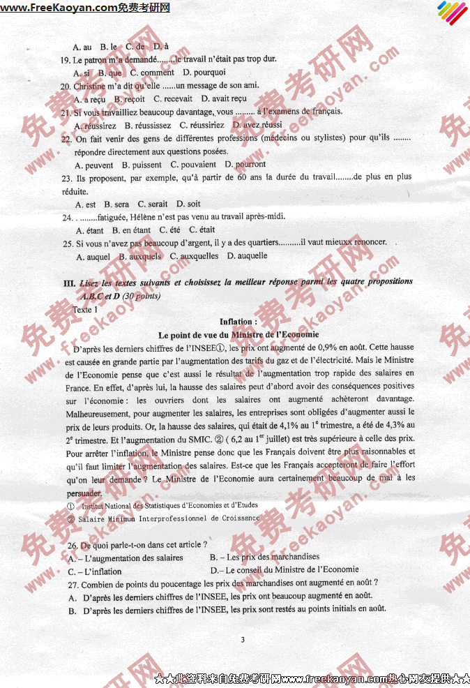 燕山大学2007年考研真题-法语(3)