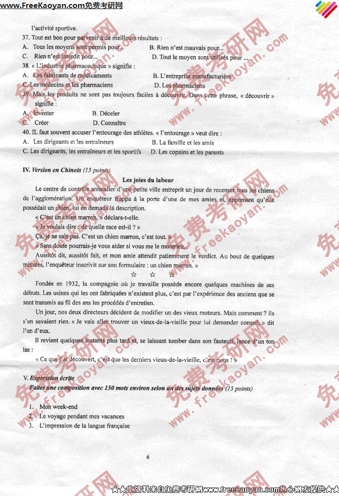 专业课考研经验 本站小编 FreeKaoyan 2018-01-23燕山大学2007年考研真题-德语