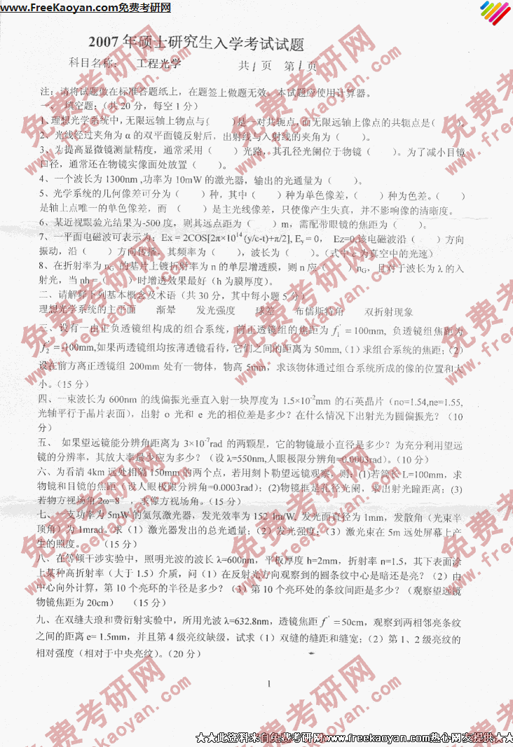 专业课考研经验 本站小编 FreeKaoyan 2018-01-23燕山大学2007年考研真题-x射线衍射学