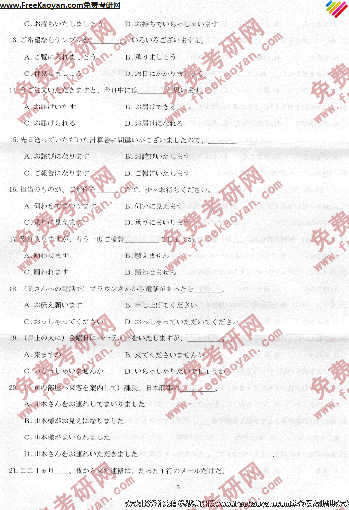 专业课考研经验 本站小编 FreeKaoyan 2018-01-23燕山大学2007年考研真题-法语