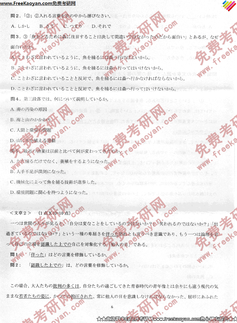 燕山大学2007年考研真题-基础日语(6)