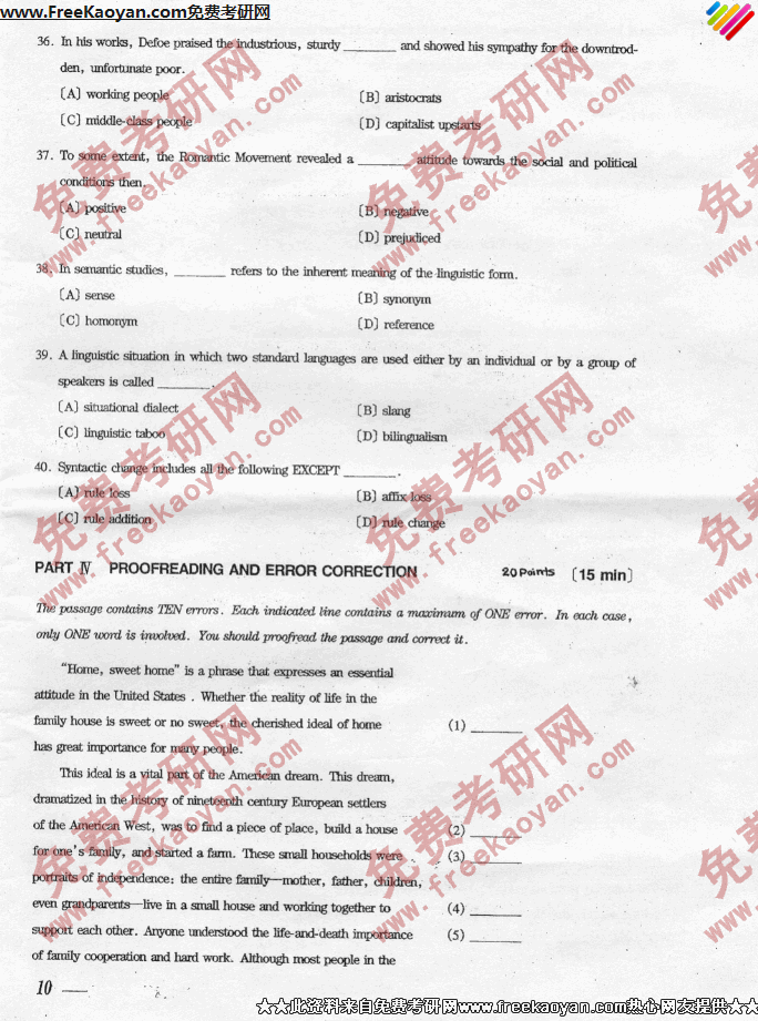 专业课考研经验 本站小编 FreeKaoyan 2018-01-23燕山大学2007年考研真题-俄语语言理论及综合知识