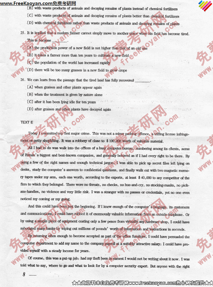专业课考研经验 本站小编 FreeKaoyan 2018-01-23燕山大学2007年考研真题-俄语语言理论及综合知识