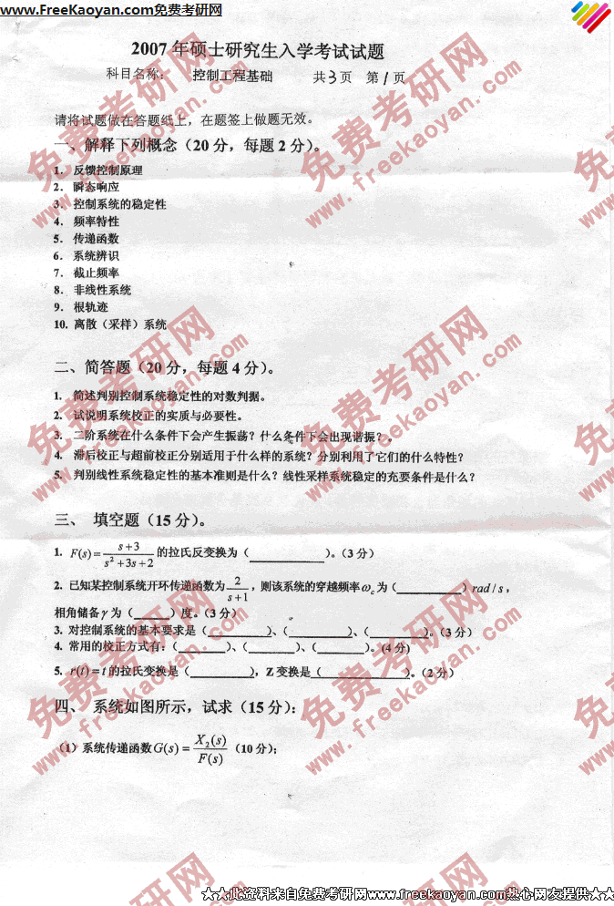 燕山大学2007年考研真题-控制工程基础