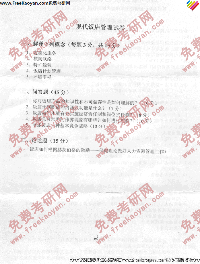 燕山大学2007年考研真题-旅游经济学和现代饭店管理(2)