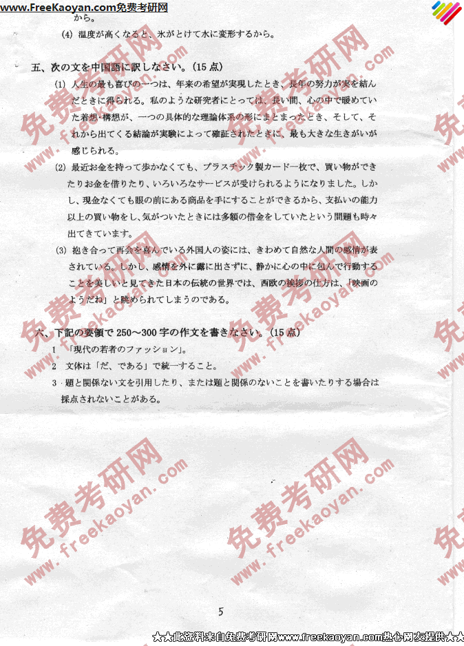 燕山大学2007年考研真题-日语(5)