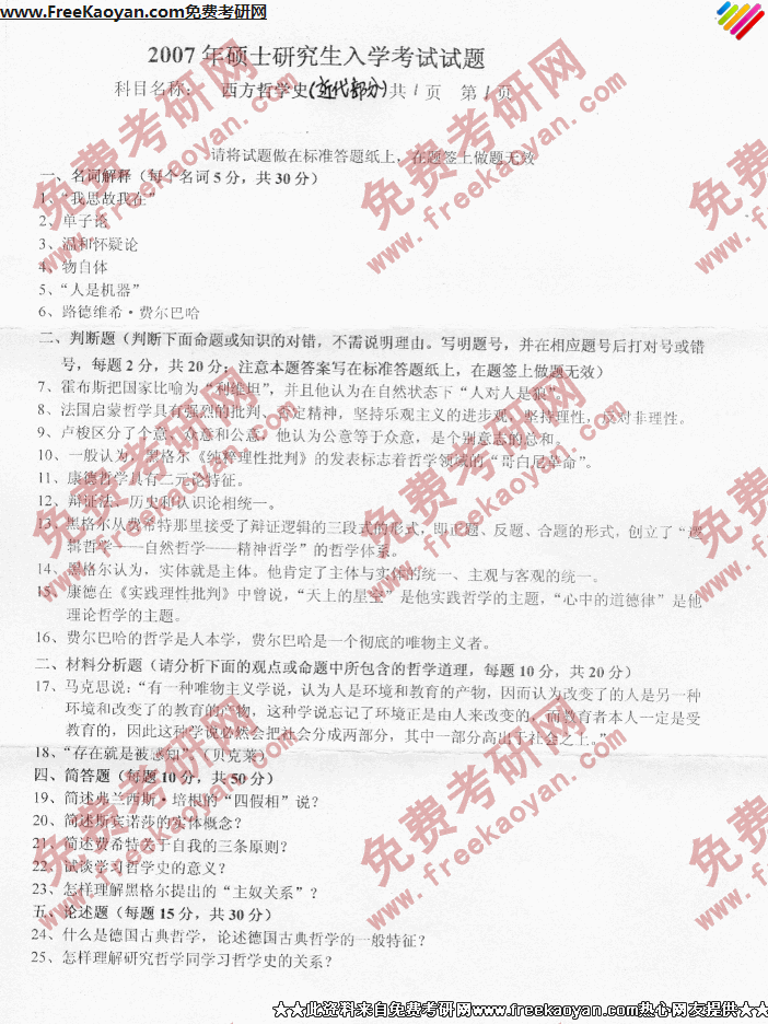 专业课考研经验 本站小编 FreeKaoyan 2018-01-23燕山大学2007年考研真题-马克思主义哲学原理