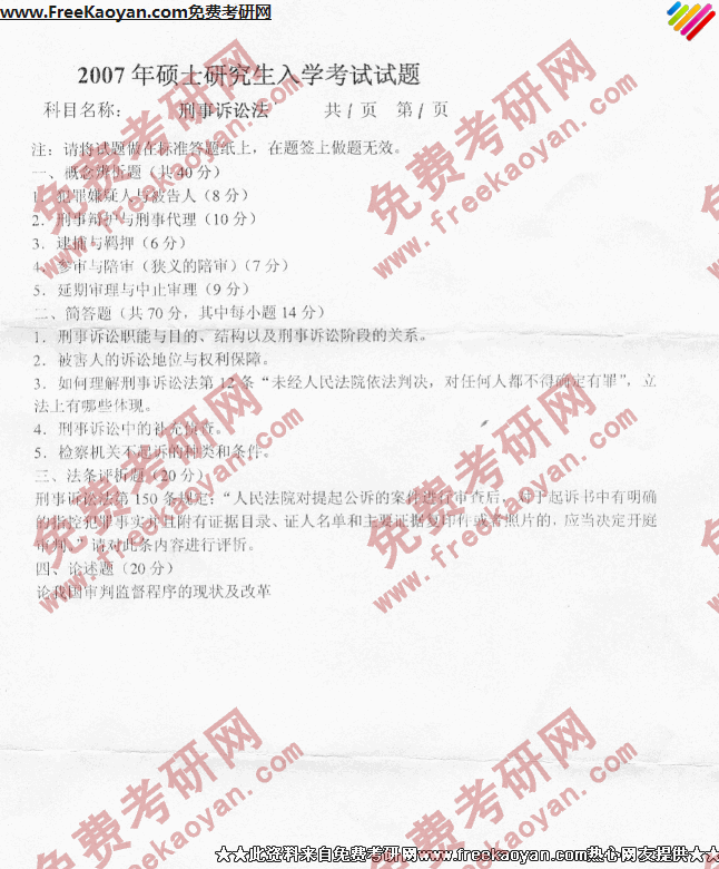 专业课考研经验 本站小编 FreeKaoyan 2018-01-23燕山大学2007年考研真题-民事诉讼法