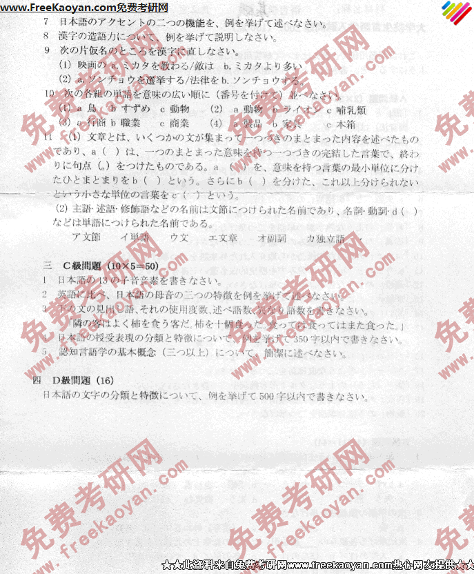 专业课考研经验 本站小编 FreeKaoyan 2018-01-23燕山大学2007年考研真题-日语
