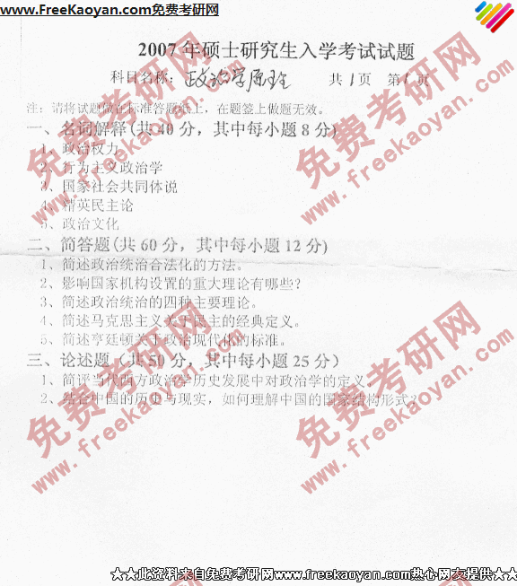 专业课考研经验 本站小编 FreeKaoyan 2018-01-23燕山大学2007年考研真题-行政管理概论