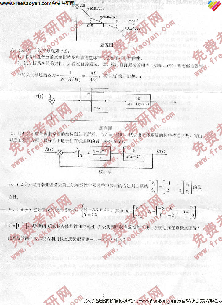 燕山大学2007年考研真题-自动控制理论(二)(2)