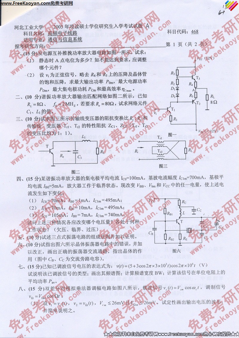 河北工业大学2005年考研真题-高频电子线路
