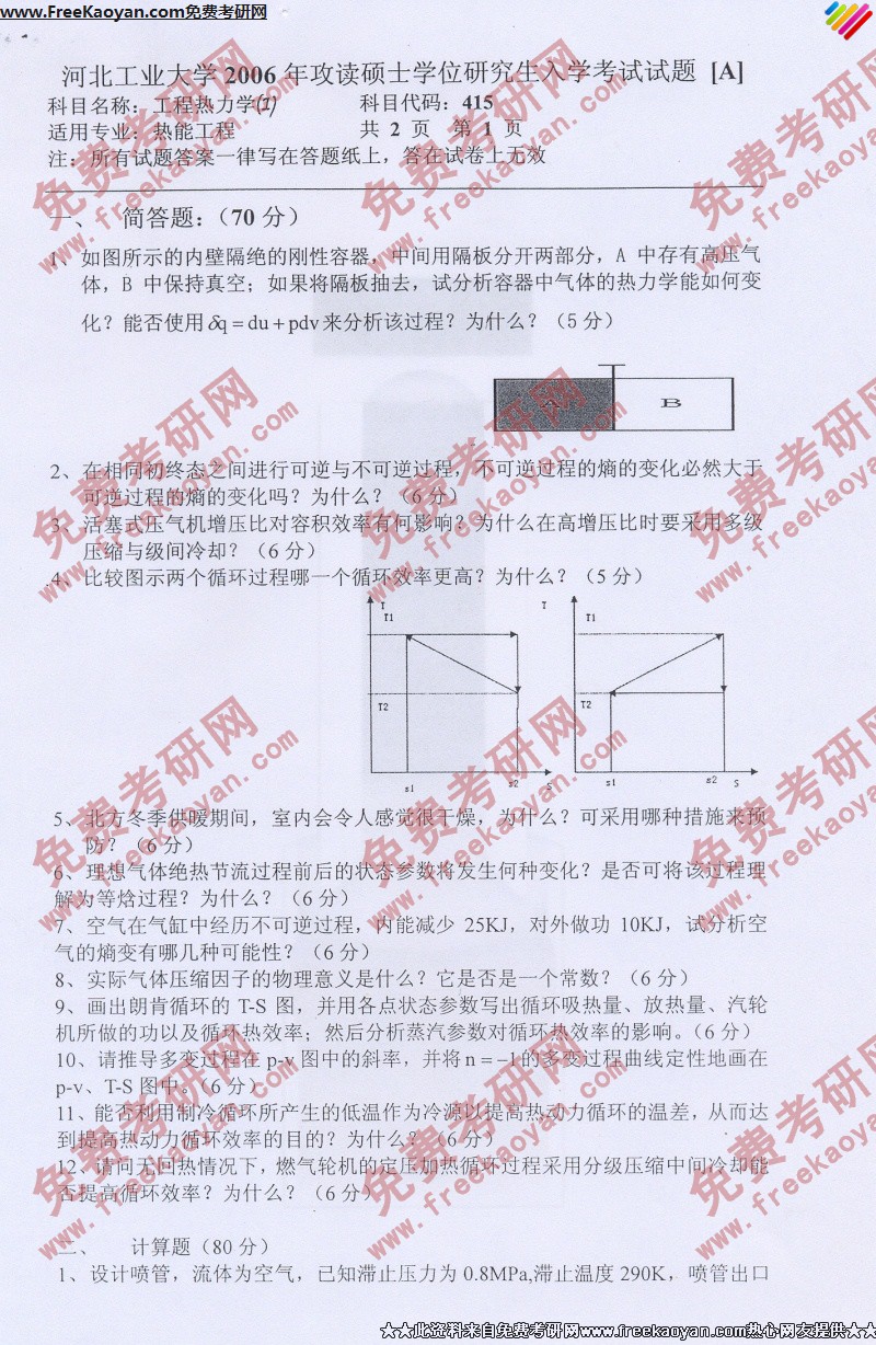 专业课考研经验 本站小编 FreeKaoyan 2018-01-23河北工业大学2006年考研真题-电路