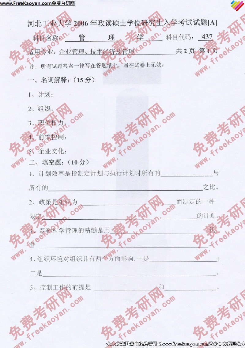 专业课考研经验 本站小编 FreeKaoyan 2018-01-23河北工业大学2006年考研真题-工程光学基础A