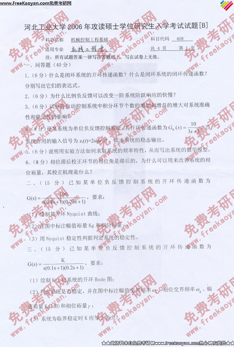 相关话题/考研真题 河北工业大学 机械 基础 控制工程