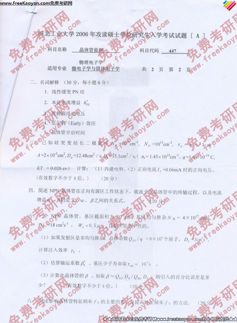 相关话题/考研真题 河北工业大学 晶体管 原理