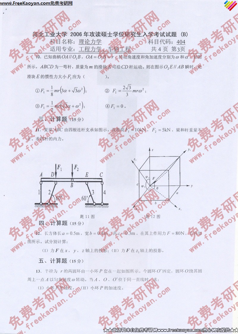 专业课考研经验 本站小编 FreeKaoyan 2018-01-23河北工业大学2006年考研真题-机械原理B
