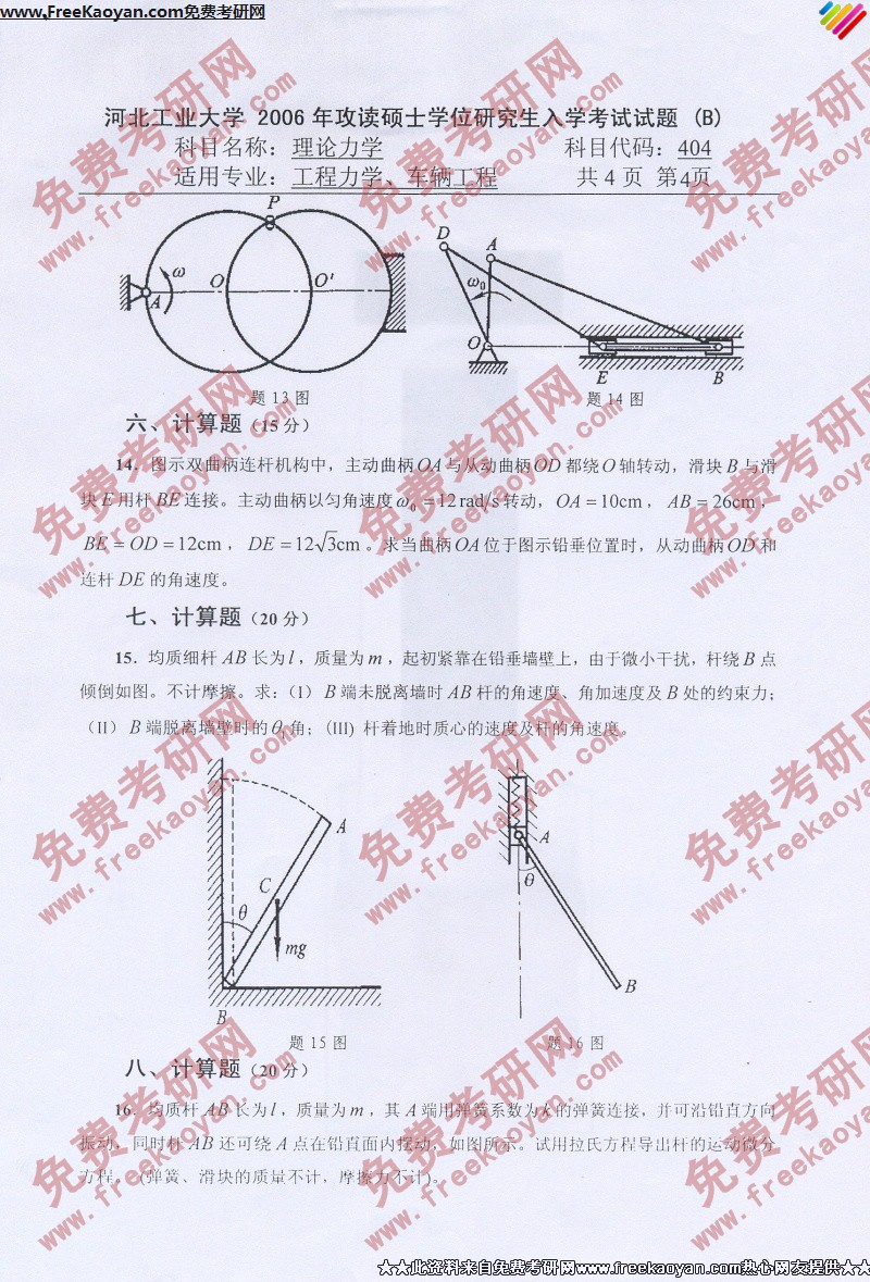 专业课考研经验 本站小编 FreeKaoyan 2018-01-23河北工业大学2006年考研真题-机械原理B