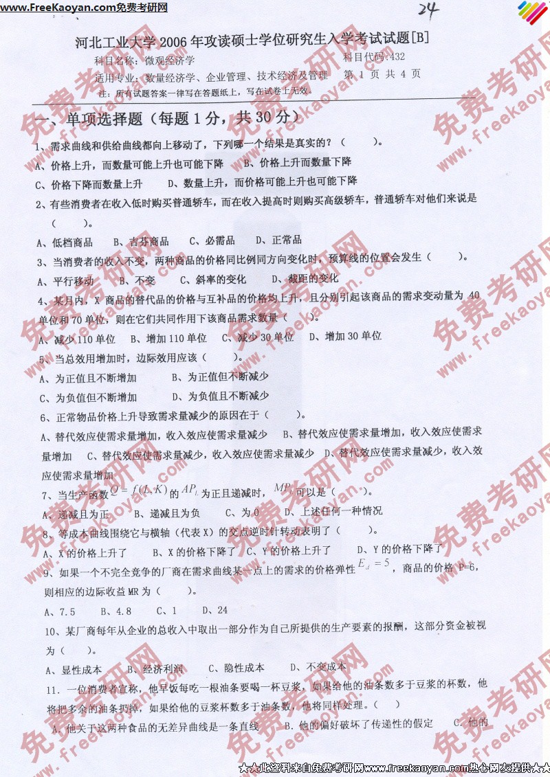 专业课考研经验 本站小编 FreeKaoyan 2018-01-23河北工业大学2006年考研真题-路基路面