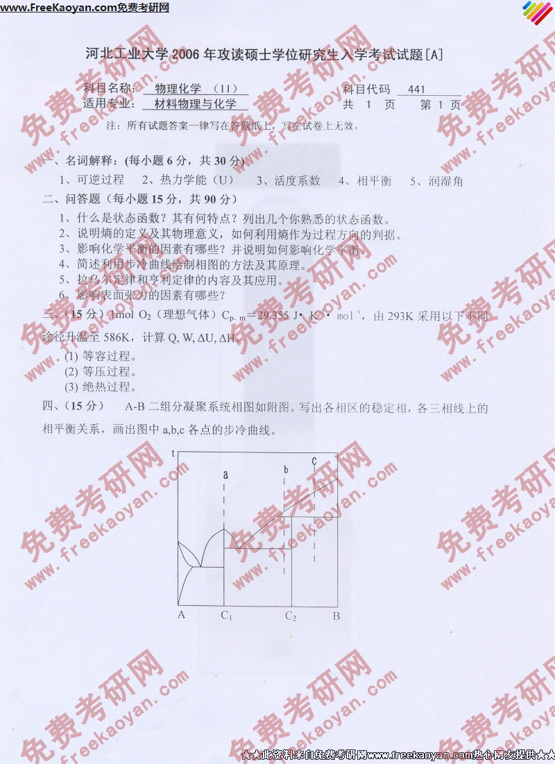相关话题/河北工业大学 考研真题 物理化学