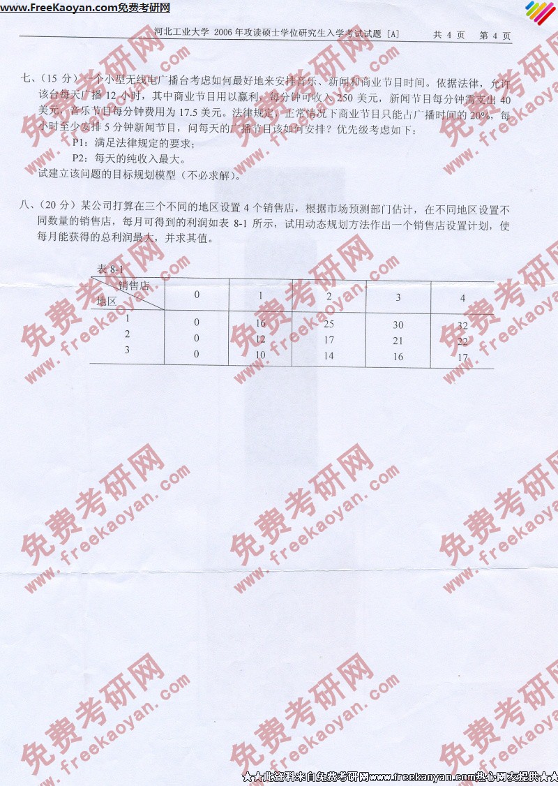 专业课考研经验 本站小编 FreeKaoyan 2018-01-23河北工业大学2006年考研真题-通信原理