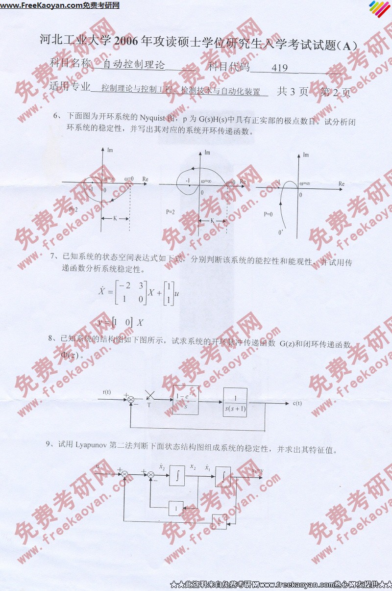 专业课考研经验 本站小编 FreeKaoyan 2018-01-23河北工业大学2006年考研真题-信号与线性系统