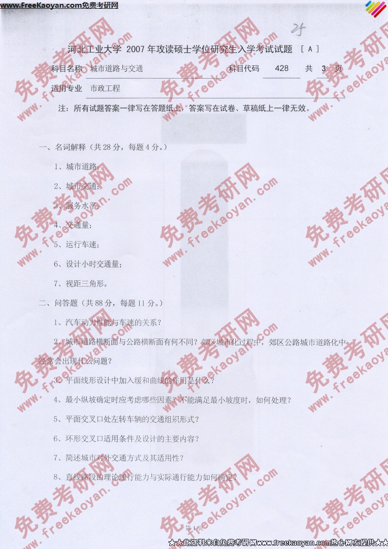 相关话题/考研真题 河北工业大学 交通 城市道路