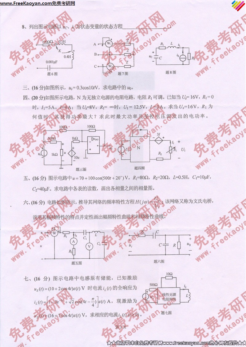 专业课考研经验 本站小编 FreeKaoyan 2018-01-23河北工业大学2006年考研真题-信号与线性系统