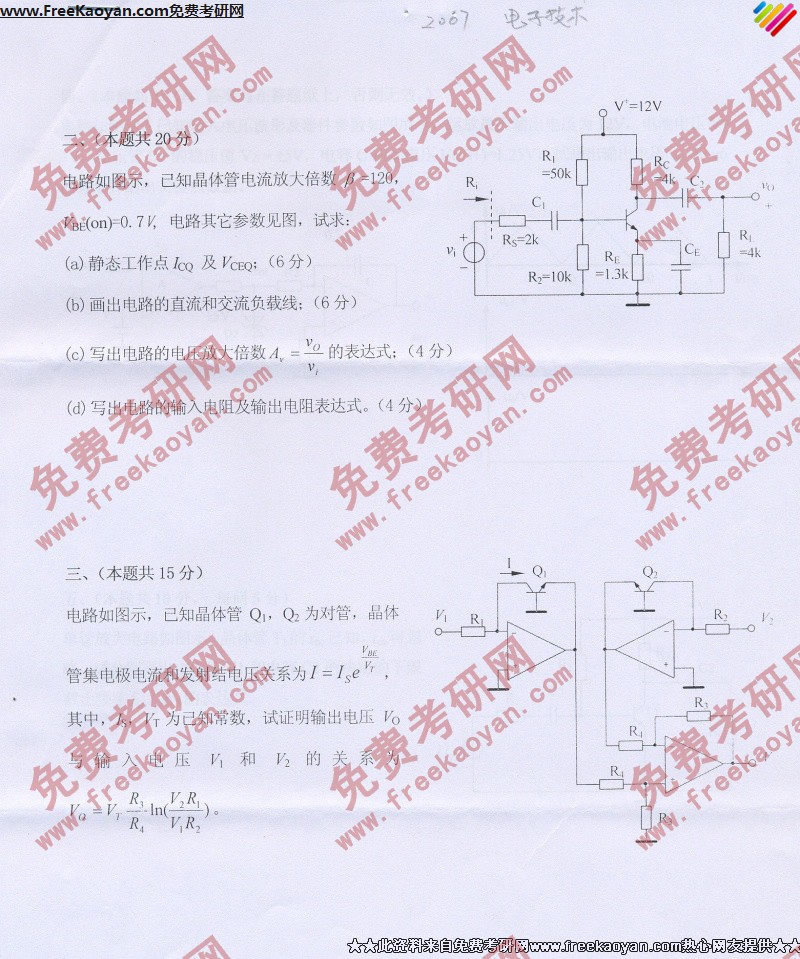 专业课考研经验 本站小编 FreeKaoyan 2018-01-23河北工业大学2007年考研真题-测控电路A