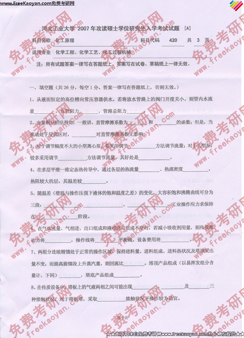 专业课考研经验 本站小编 FreeKaoyan 2018-01-23河北工业大学2007年考研真题-工程热力学1