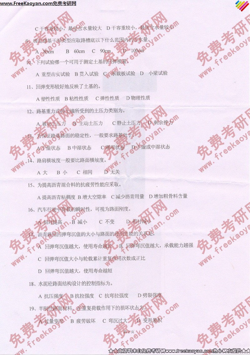 相关话题/考研真题 河北工业大学 路基 路面