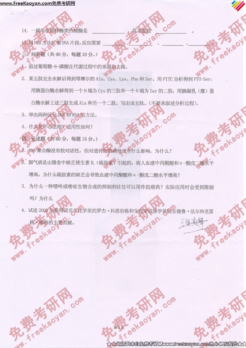 相关话题/河北工业大学 考研真题 生物化学