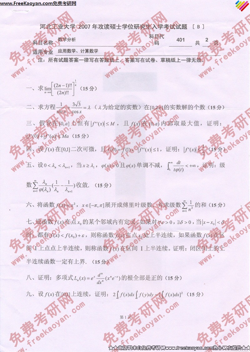 专业课考研经验 本站小编 FreeKaoyan 2018-01-23河北工业大学2007年考研真题-普通物理学