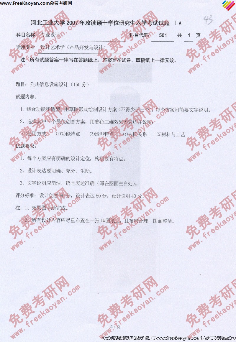 专业课考研经验 本站小编 FreeKaoyan 2018-01-23河北工业大学2007年考研真题-艺术与设计史论