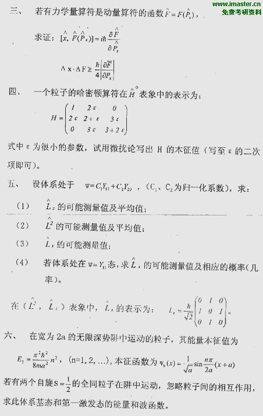 中国石油大学(华东)2000年考研真题-量子力学(3)