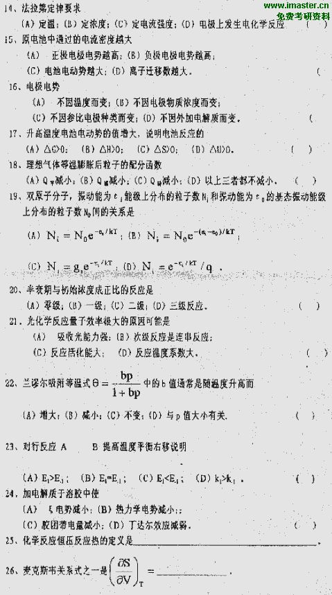 中国石油大学(华东)2000年考研真题-物理化学(2)