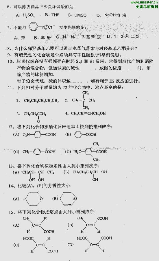 中国石油大学(华东)2000年考研真题-有机化学(3)
