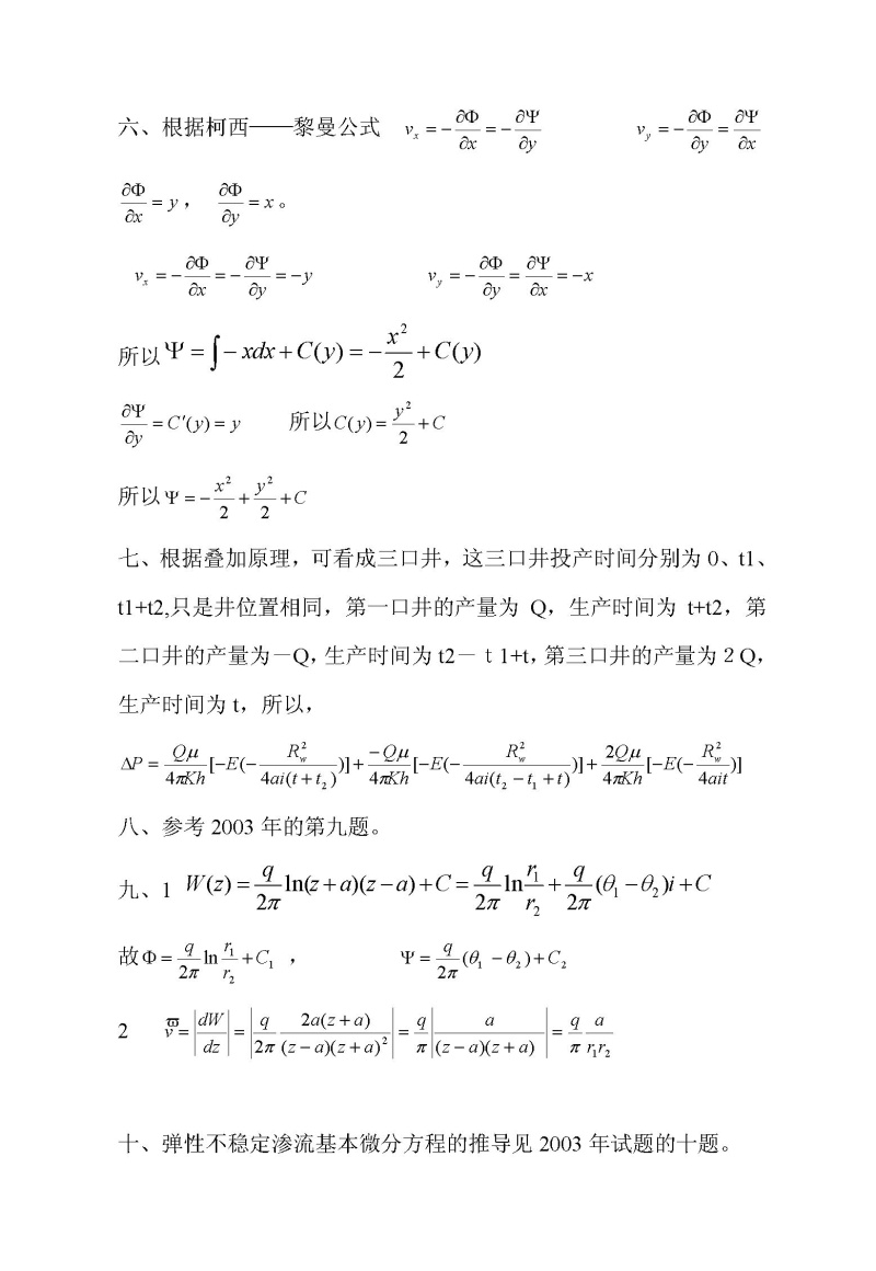 中国石油大学(华东)2004年考研真题-渗流力学参考答案(3)