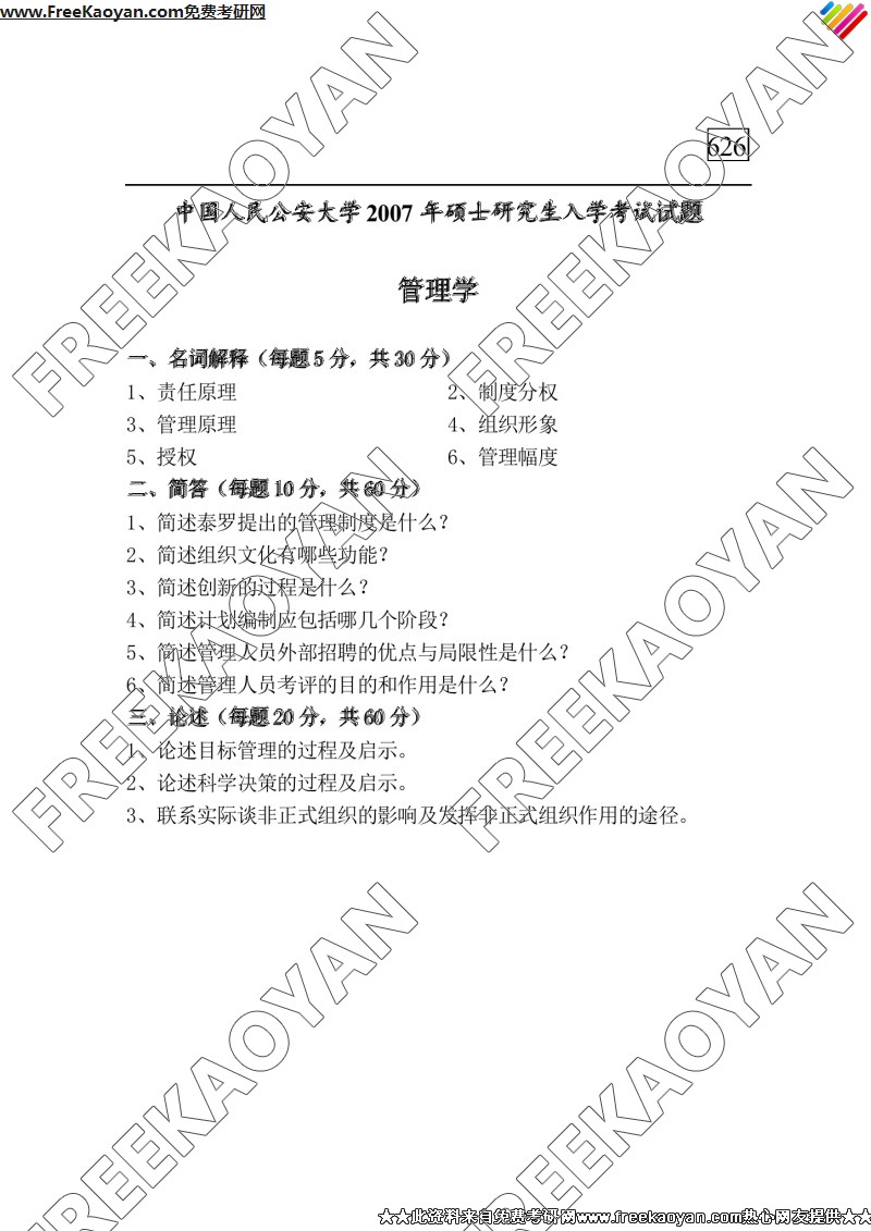 专业课考研经验 本站小编 FreeKaoyan 2018-01-23中国人民公安大学2007年考研真题-法理学,宪法学