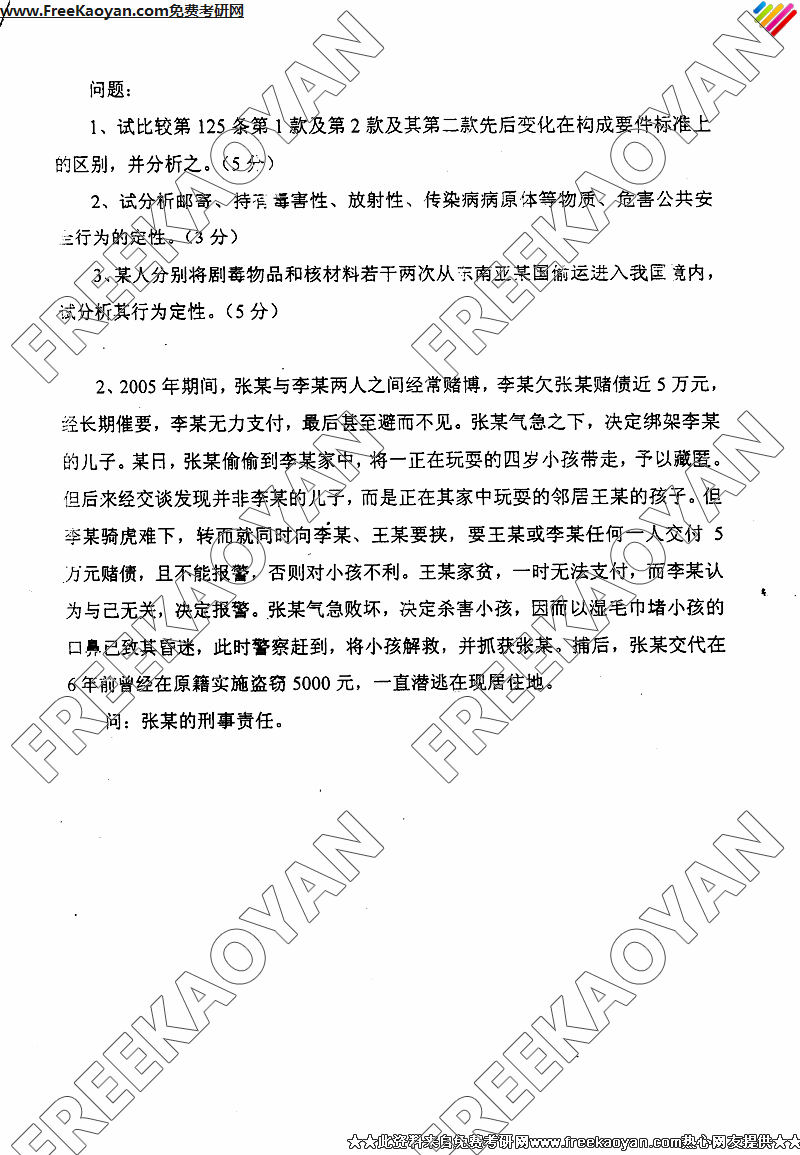 • 中国青年政治学院2006年考研真题-法学综合考试