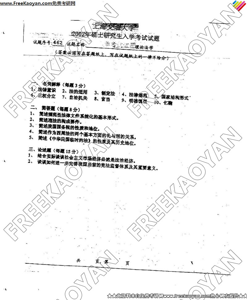 专业课考研经验 本站小编 FreeKaoyan 2018-01-23一、名词1.谋叛 2.秋审处 3.发谴 4.种姓制度 5.教会法大全 6.衡平法二、简答1.简述法经的结构内容2.<明大诰>的结构,特征3.中华民国临时约法的制定背景4.罗马法复兴的原因及历史地位三、论述1.论述清末领事裁判权的特征2.<魏玛宪法>的特征及历史地位 ...