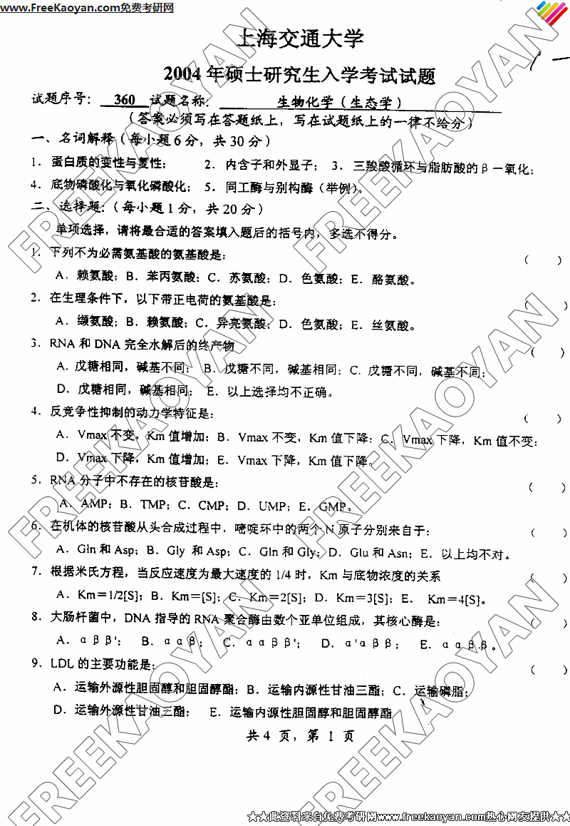 相关话题/考研真题 上海交通大学 生态学 生物化学