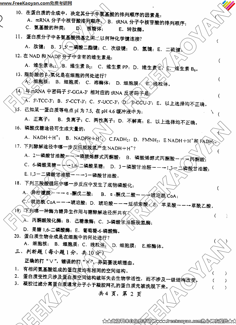 上海交通大学2004年考研真题-生物化学(生态学)(2)