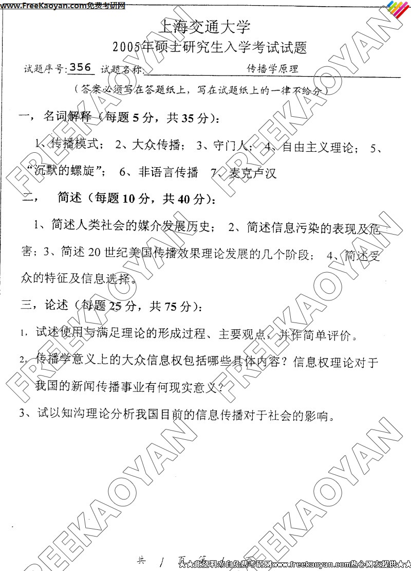 专业课考研经验 本站小编 FreeKaoyan 2018-01-23上海交通大学2005年考研真题-材料科学基础