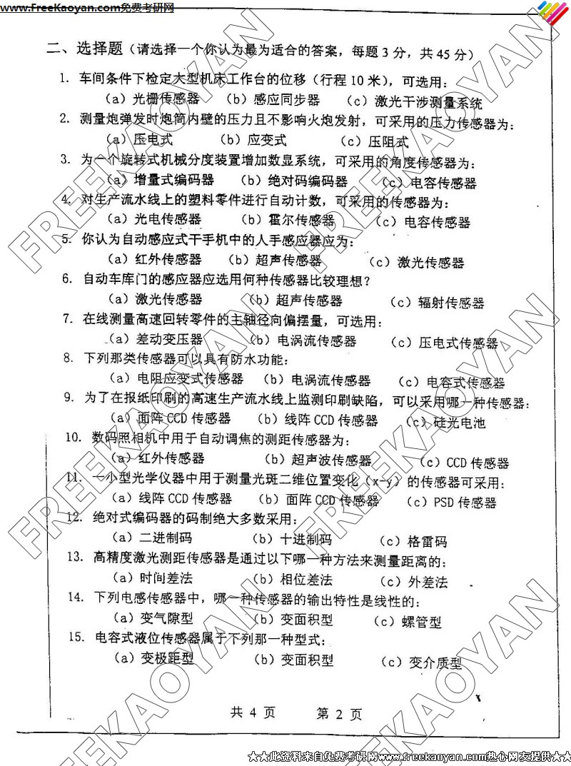 上海交通大学2005年考研真题-传感器与检测技术(2)