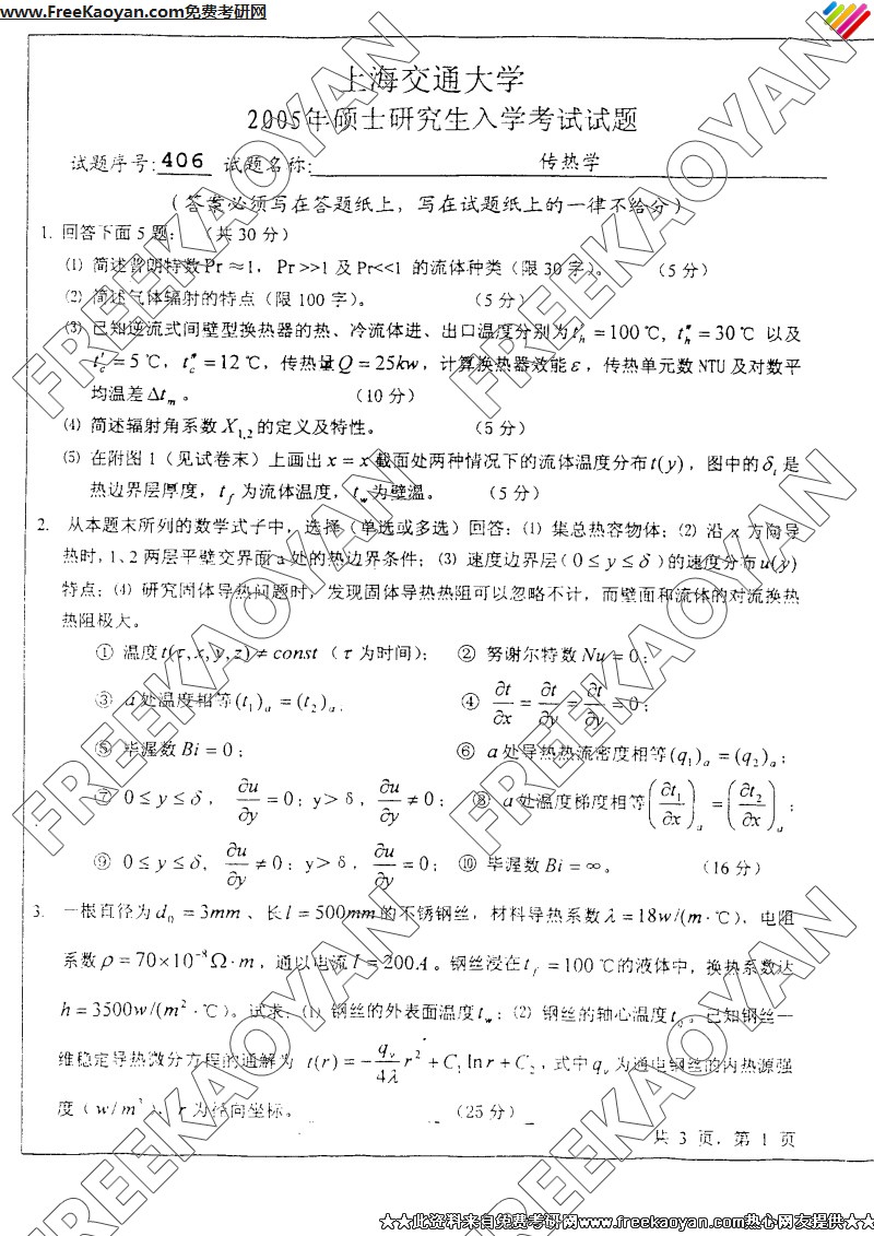 专业课考研经验 本站小编 FreeKaoyan 2018-01-23上海交通大学2003年考研真题-水力学