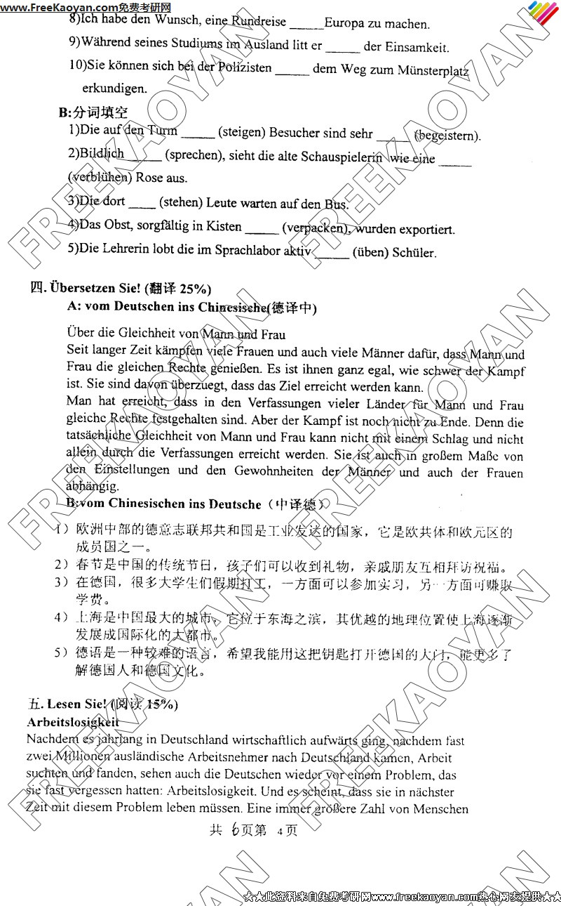 上海交通大学2005年考研真题-德语(二外)(4)
