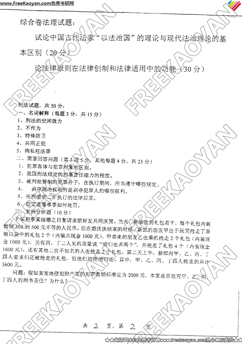专业课考研经验 本站小编 FreeKaoyan 2018-01-23上海交通大学2005年考研真题-法理学